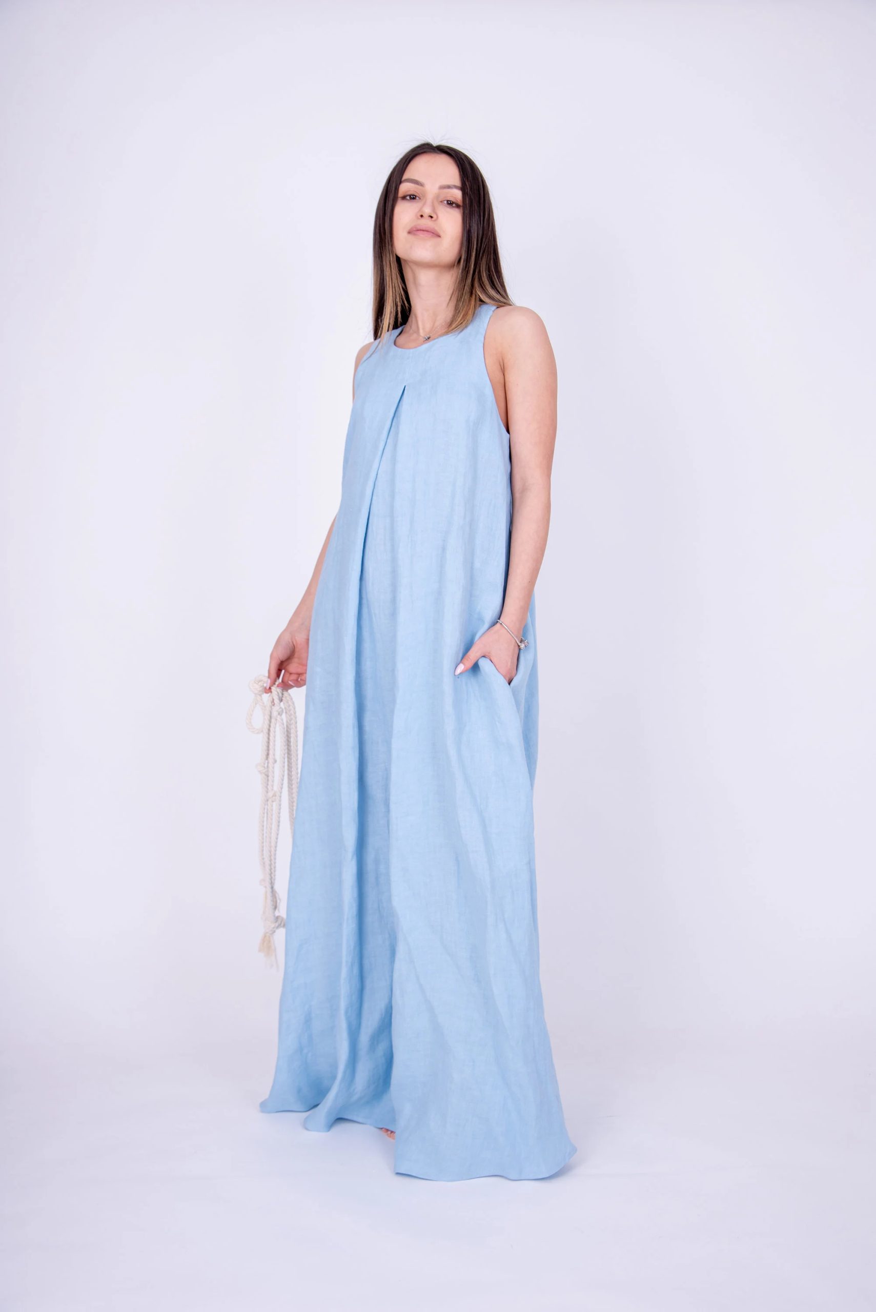 Teal Halter Shift Dress – Loose Draped Silhouette, Minimalist Contrast Trim Midi Dress €24.05 Select options This product has multiple variants. The options may be chosen on the product page -